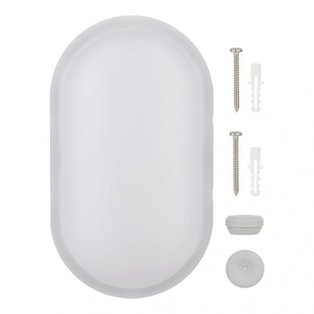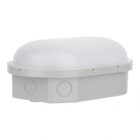 Šis tipinis judesio jutiklio sieninis šviestuvas arba rūsio šviestuvas dar vadinamas „Bulleye“, „Bully“, „Bulkhead“ arba „Hublot“. Šviesiai pilkas korpusas ir matinės baltos spalvos difuzorius pagaminti iš tvirto UV spinduliams atsparaus plastiko (IK08). Šio „Bulkhead“ ypatumas yra tas, kad jame yra 5 DIP jungikliai, kuriais galite nustatyti diapazoną, laikymo laiką ir dienos šviesos jutiklį. Be to, yra 2 jungiklio funkcijos, kuriomis iš anksto galima nustatyti galios suvartojimą (6,2 W arba 8 W, kuris lemia šviesos intensyvumą) ir šviesos spalvą (3000 K šiltai balta ir 4000 K šaltai balta). Tai labai praktiška, jei norite turėti galimybę pasirinkti geriausią variantą vietoje. Yra ne mažiau kaip 5 kabelių įvadai, todėl maitinimas ir kilpų sujungimas nesukelia problemų. Apsaugos klasė (IP54). Šis energiją taupantis šviestuvas tiekiamas be kabelio ir yra lengvai surenkamas. Tipinės taikymo sritys: rūsiai, portalai, gaisrinės, sandėliukai, dirbtuvės ir garažai. Aplinkos temperatūra: nuo -20 C iki +40 C.