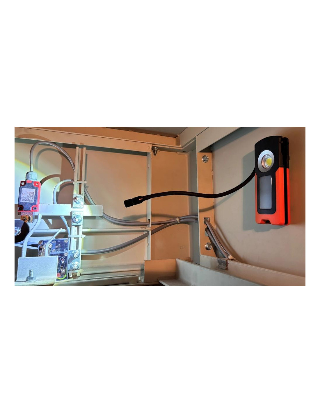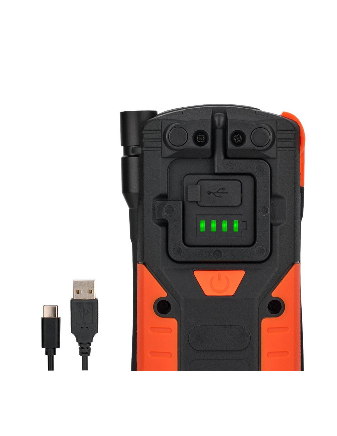 „Robust Led Inspect“ – patogus daugiafunkcis darbo žibintas. Tvirtas 15 W įkraunamas žibintas yra patvarus (IK08 ir IP54) ir universalus. Ypač balta šviesa (6500 K) gali būti naudojama kaip platus spindulys (120–1500 lm) arba kaip taškinis spindulys (20–300 lm). Plataus spindulio funkcija taip pat yra pritemdoma (25/50/100 %). Taškinio spindulio apžiūros žibintas sumontuotas ant lanksčios 30 cm ilgio pasukamos rankos, kad būtų galima apšviesti net mažiausias erdves. Magnetinės galinės dalies ir pasukamo pakabinimo kablio dėka galite apšviesti iš bet kokio kampo. 3,7 W ličio baterija yra įkraunama (pridedamas USB-C laidas). Priklausomai nuo padėties, baterijos veikimo laikas yra nuo 3 iki 16 valandų. Idealiai tinka apžiūros darbams. Taip pat naudojamas stovyklaujant ir užsiimant veikla lauke.