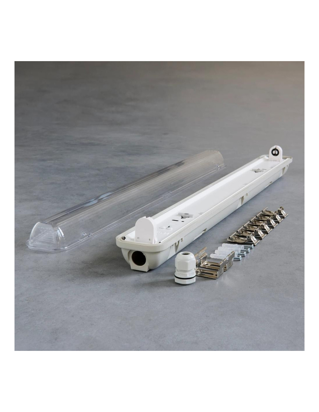 Vandeniui atsparūs šviestuvai su keičiamomis lemputėmis yra tvaresni nei šviestuvai su fiksuotu LED elementu. Energiją taupančių šviesos šaltinių keitimas, kai jie pasiekia savo tarnavimo laiką, yra tiesiog tvaresnis nei viso šviestuvo keitimas. Štai kodėl „Bailey Lights“ siūlo „Relamp“ šviestuvus. Šis IP65 IK10 šviestuvas (dar vadinamas „batten“ arba „tri-proof“) turi T8 220–240 Vac LED vamzdį su G13 lizdu. Vandeniui atsparus šviestuvas tinka vienam LED vamzdeliui, neturi balasto ir yra lengvai montuojamas prie lubų bei prijungiamas. Šis šviestuvas tiekiamas be LED vamzdžio: galite pasirinkti LED vamzdį, kuris geriausiai atitinka jūsų situaciją. „Bailey“ siūlo platų pasirinkimą. Pridedami priedai (du PG13,5 kabelių įvadai, nerūdijančio plieno fiksavimo spaustukai ir tvirtinimo spaustukai). Pastaba: šis šviestuvas tinka tik LED vamzdžiams. Idealiai tinka drėgnoms patalpoms, garažams, verandoms ir galerijoms.