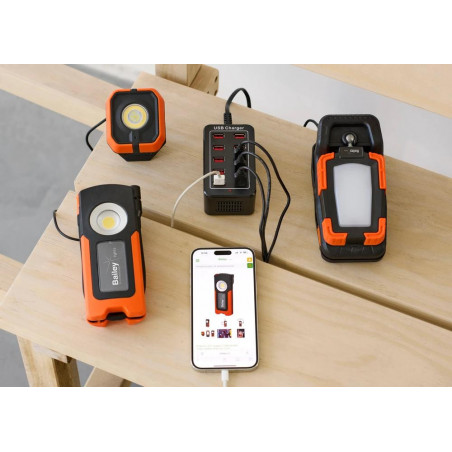 „Robust LED Multi“ – tai kompaktiškas, lankstus darbo žibintas. Tvirtas 20 W įkraunamas žibintas yra tvirtas (IK08 ir IP54) ir itin funkcionalus. Ypač balta šviesa (6500 K) yra pritemdoma (100/50/10 %). 3,7 W ličio baterija yra įkraunama (pridedamas USB-C laidas). Įrengtas magnetinis pastolių spaustukas, todėl žibintą galima pastatyti horizontaliai ir vertikaliai ant lygaus paviršiaus. Prožektoriaus dalis gali pasisukti 360 laipsnių kampu, kad visada galėtų gražiai šviesti norima kryptimi nejudėdamas. 3,7 W ličio baterija yra įkraunama (pridedamas USB-C laidas). Priklausomai nuo padėties, baterijos veikimo laikas yra nuo 3 iki 15 valandų. Idealiai tinka naudoti dirbtuvėse ir garažuose. Taip pat naudojamas stovyklaujant ir užsiimant lauko veikla.