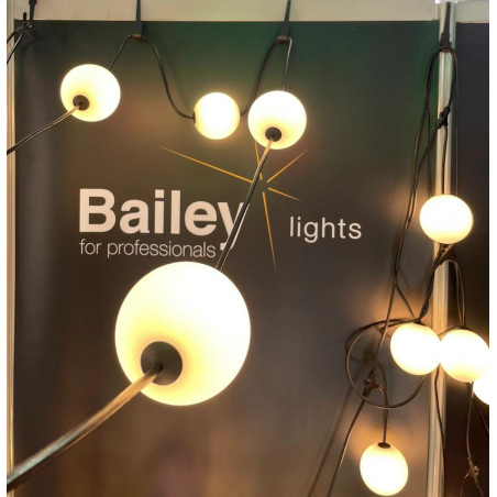 „Bailey Lights“ LED vakarėlių kamuoliukai suteikia visiškai naują dimensiją vakarėlių ir renginių apšvietimui su savo LED vakarėlių kamuoliukais. Dešimt 10 cm plastikinių kamuoliukų yra išdėstyti ant 7,7 m ilgio girliandos (atstumas tarp kiekvieno kamuoliuko – 46 cm). Šie balti opaliniai „pieniški“ kamuoliukai skleidžia gražų švelnų švytėjimą (2500 K). Kiekvieno kamuoliuko viduje yra 1 W energiją taupantis šviesos šaltinis, skleidžiantis 100 lm šviesos aplinkui. Juos galima prijungti prie vienos papildomos šviesos girliandos (tai sumažina energijos sąnaudas, išlaikant praktiškai identišką šviesos srautą). Naudodami 32 W adapterį (146784), galite prijungti iki 30 arba 40 kamuoliukų. Tinka naudoti viduje ir lauke (IP67). Pridedamas 12 W adapteris ir prijungimo laidas.