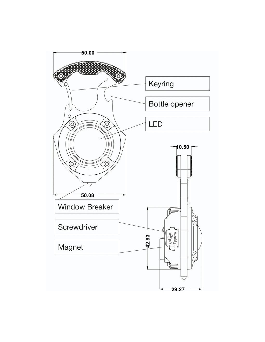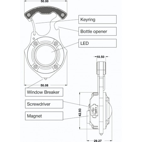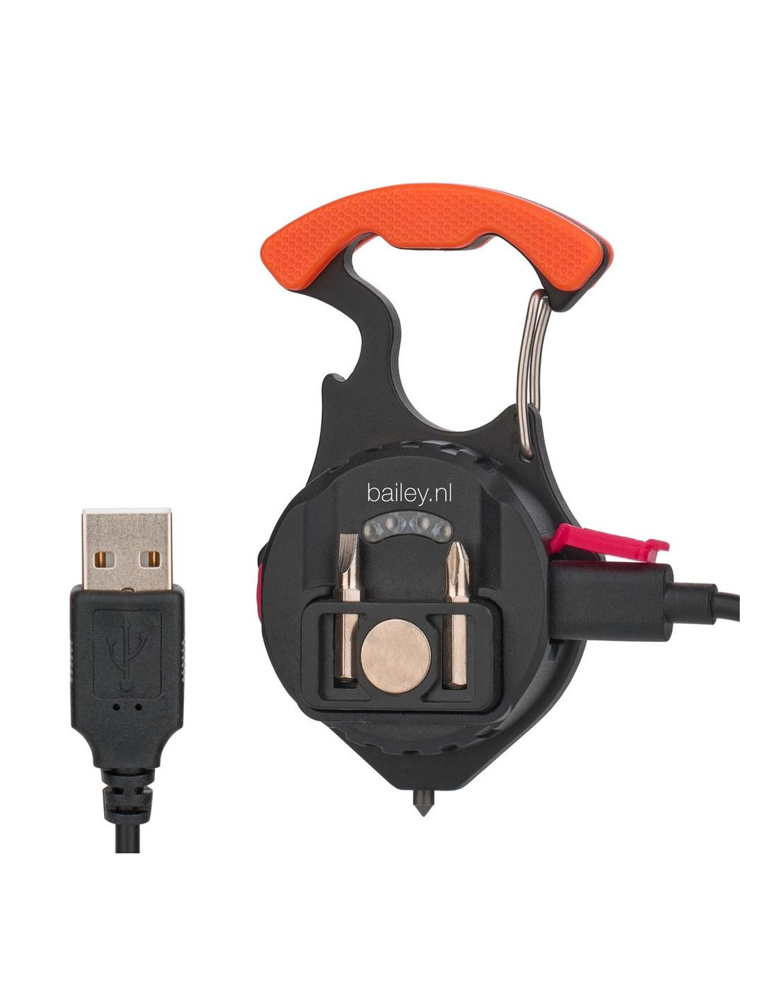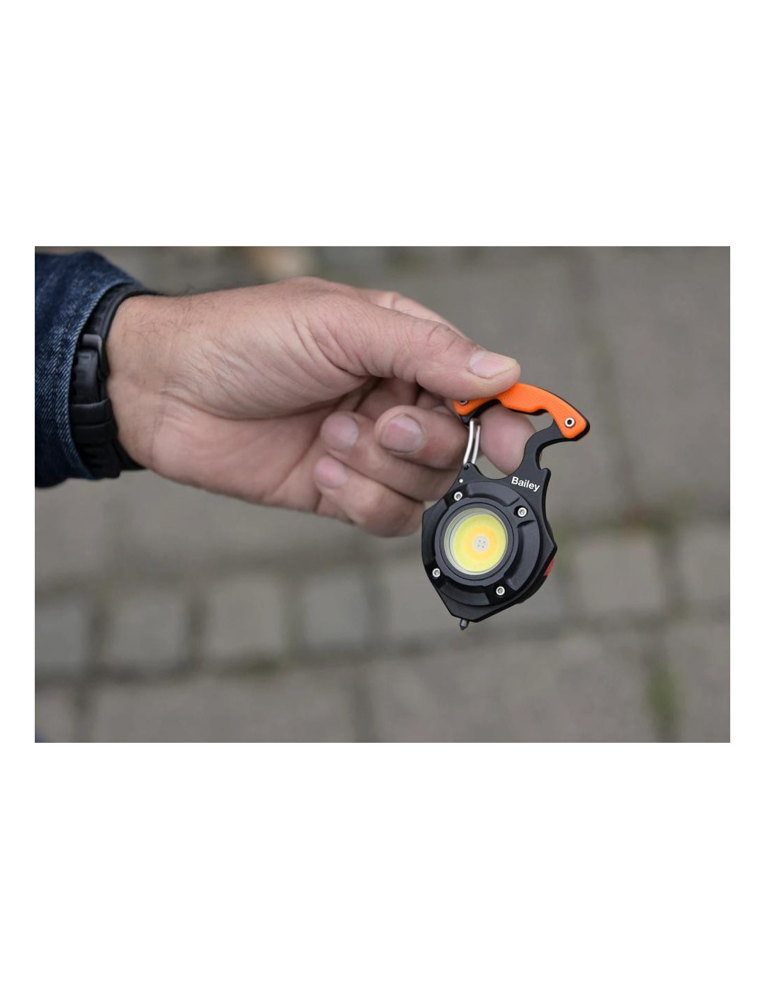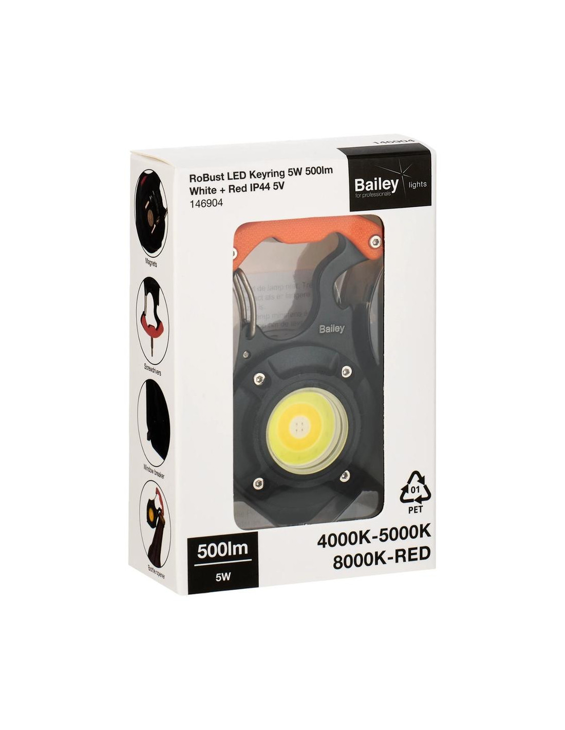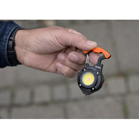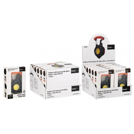 Kompaktiškas daugiafunkcis mini prožektorius „Robust LED Keyring“ priklauso „Robust LED Charge“ serijai. Šis universalus prietaisas sukurtas taip, kad jį visada būtų po ranka automobilyje, stovyklavietėje, darbo ar apžiūros metu. Yra net 5 apšvietimo funkcijos, kuriomis galite rodyti skirtingas šviesos spalvas su skirtingomis liumenų reikšmėmis. Taip pat raudona lemputė veikia kaip įspėjamoji. Ši raudona lemputė netgi gali mirksėti kaip papildomas įspėjamasis signalas. Taip pat turi naudingų funkcijų, tokių kaip butelių atidarytuvas, šoninio lango ištraukiklis (jei automobilis atsidurtų vandenyje), du atsuktuvo antgaliai, kuriuos galima įdėti į rankeną, ir magneto funkcija. Baterijos veikimo laikas 1–2,5 val., įkrovimo laikas 1 valanda. Pridedamas 0,3 m USB-C laidas įkrovimui.