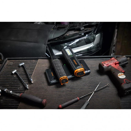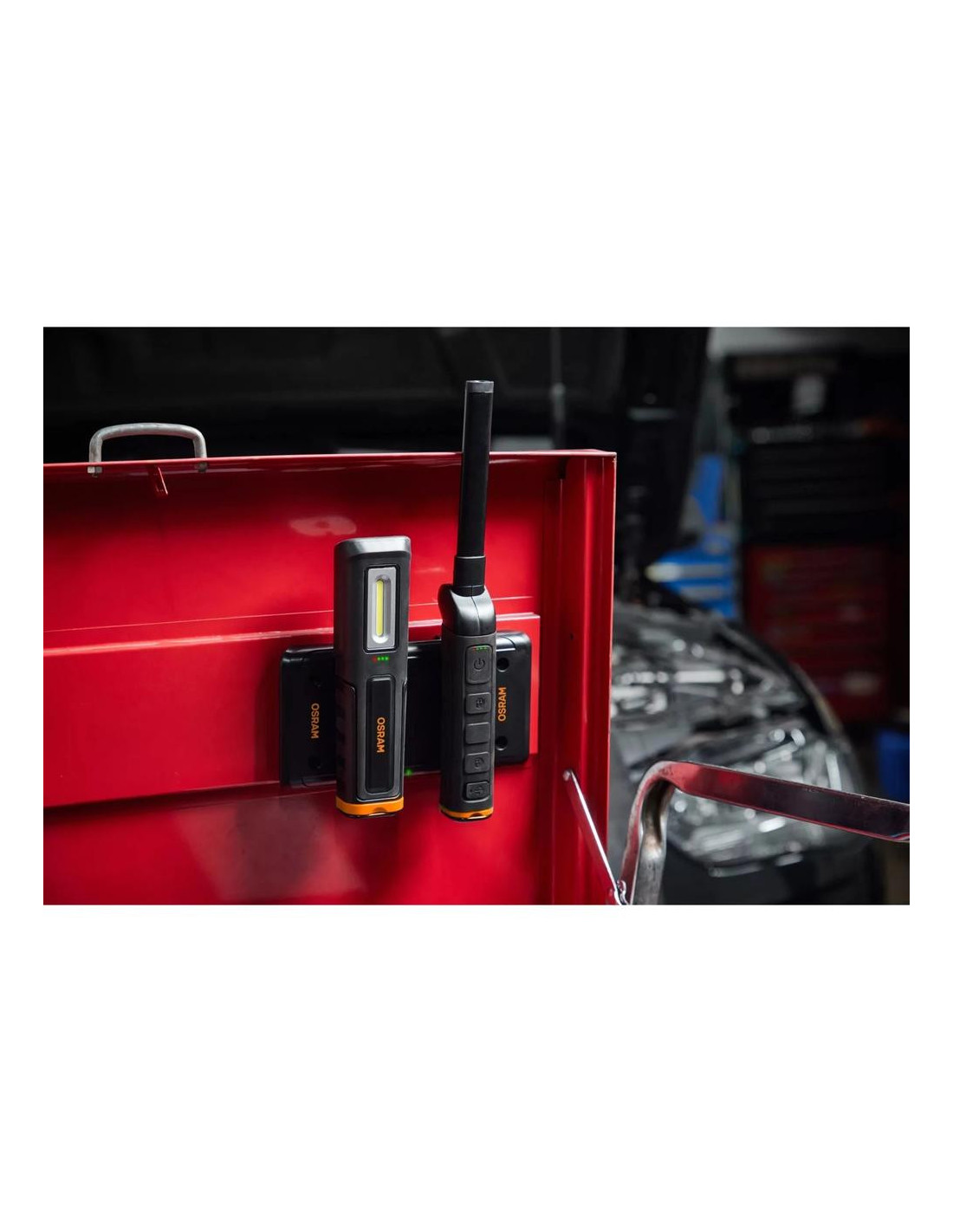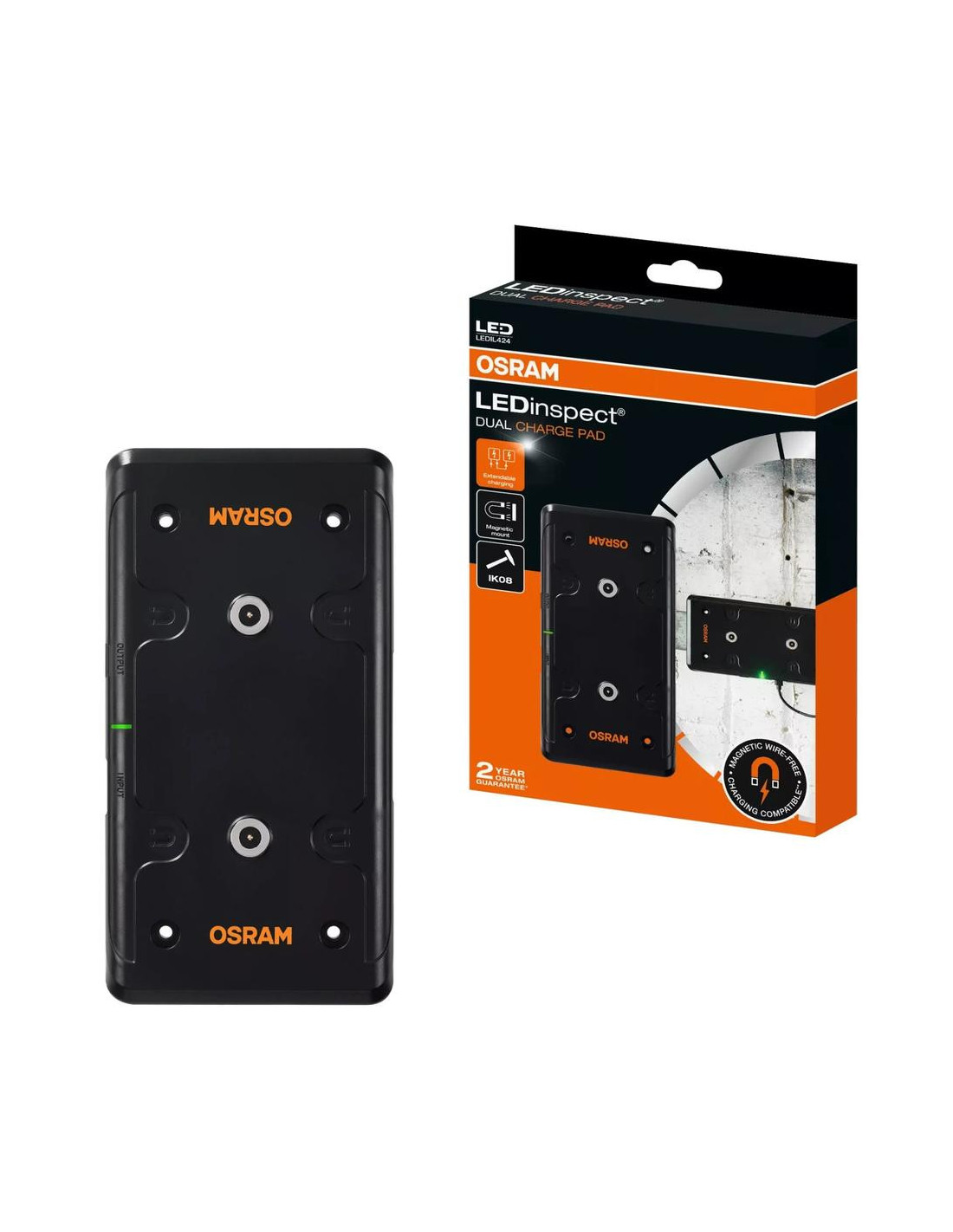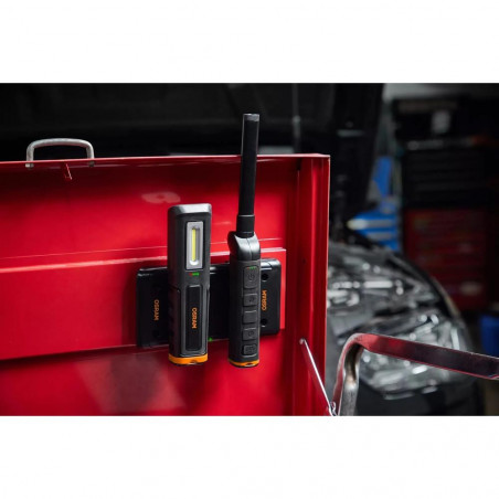 Lengviausias būdas įkrauti apžiūros lemputes. OSRAM belaidis įkrovimo kilimėlis saugiai laiko ir įkrauna porą tinkamų apžiūros lempučių, kad jos būtų paruoštos, kai tik jūs būsite pasiruošę. Šis novatoriškas dizainas ne tik padidina patogumą, bet ir užtikrina nepertraukiamą darbo eigą. Belaidė technologija. Dėl įmontuotų stiprių magnetų ir varžtų skylių įkrovimo kilimėlį galite lengvai pritvirtinti prie įrankių dėžių, darbastalių ir kt. IK08 ir IP20 atsparumo klasėms, kad atlaikytų profesionalių dirbtuvių sąlygas.