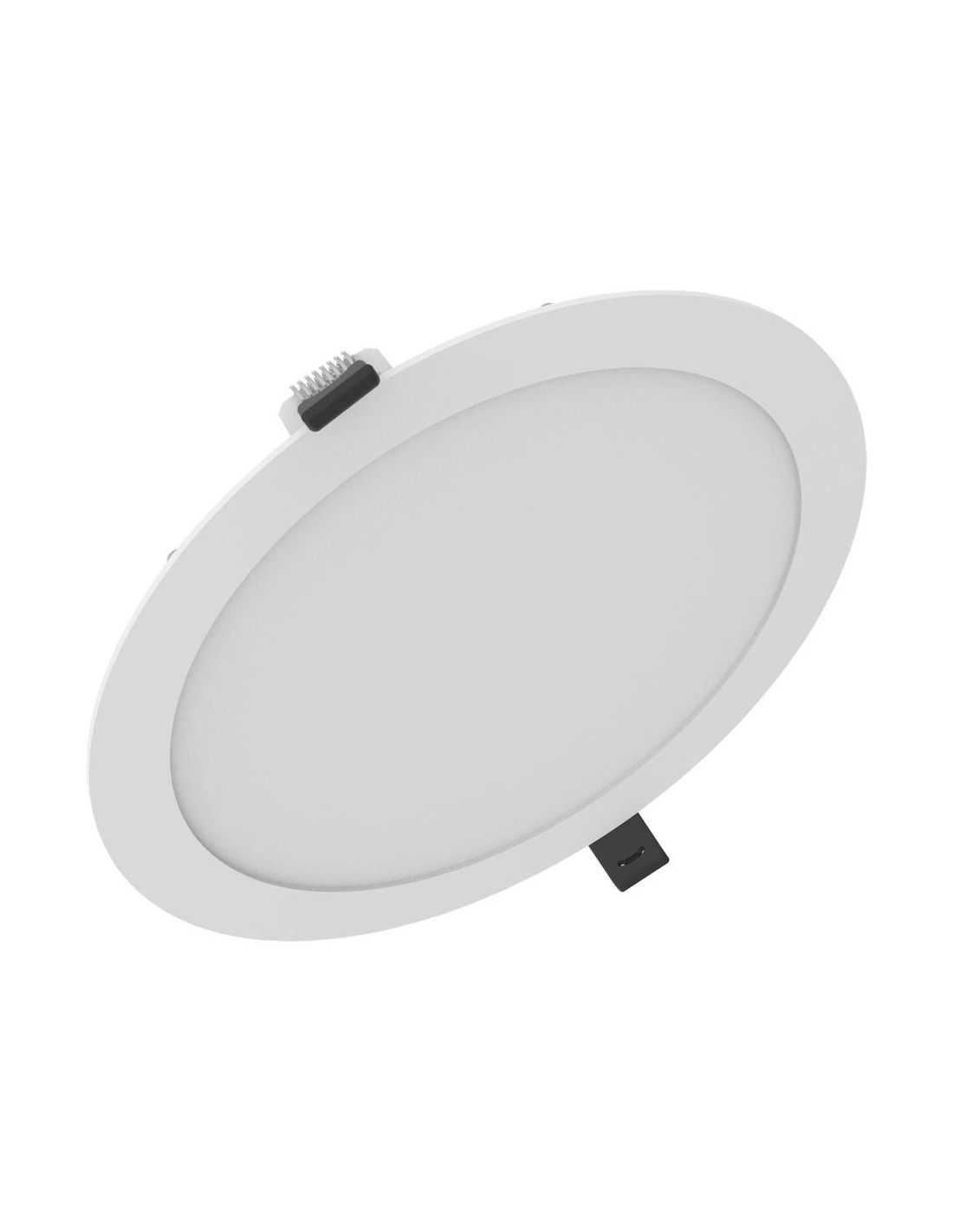 Plonas, apvalus, įleidžiamas LED šviestuvas, 205 mm skersmens, aliuminio korpuso, su „Multi Select“ funkcija (daugiaspalvis / kelių liumenų) ir labai tolygiu šviesos paskirstymu. Komplekte yra išorinis valdiklis su 3 polių kiauryminiu laidų išvedimu, užtikrinančiu lankstumą ir lengvą montavimą, perjungiamas. Pasirenkami valdiklio galios lygiai („Power Select“ – PS), siūlantys 3 skirtingus liumenų paketus (daugialiumenų). Valdiklis prie šviestuvo prijungtas nuimama pasukama DC 5,5 jungtimi. Valdiklio matmenys: 175 mm x 55 mm x 31 mm. Išėjimo srovė: 430 mA: elektroninės valdymo plokštės išvesties pulsavimo srovė: < 10 %. Laidų išdėstymas: bevaržtis gnybtas, 3 polių (N, E, L). Laido skerspjūvis iki 3x1,5 mm². Galima nominali galia: 19 W / 14,3 W / 9,5 W, nominali įtampa: 220…240 V, nominali srovė: 88/68/48 mA, srovės tipas: kintamoji srovė, įjungimo srovė: 7,60 A, tinklo dažnis: 50…60 Hz, galios koeficientas: > 0,90, galimas šviesos srautas: 1900 lm / 1430 lm / 950 lm, šviesos efektyvumas: iki 100 lm/W, bendras harmoninis iškraipymas: < 20 %, standartinis spalvų atitikimo nuokrypis: < 5 sdcm, spalvų atgavos indeksas: > 80, spalvos temperatūra: 3000 K / 4000 K, mirgėjimas: < 5 %, mirgėjimo rodiklis Pst LM: <1, stroboskopo efekto rodiklis SVM: <0,4, tarnavimo laikas L70/B50 esant 25 °C: 50 000 h. L80/B10 esant 25 °C: 35000 val., L90/B10 tarnavimo laikas esant 25 °C: 15000 val., Įjungimo ciklų skaičius: 25000. Korpusas pagamintas iš lieto aliuminio su milteliniu dažymu, dangos medžiaga: polikarbonatas (PC). Balta spalva, artimiausia RAL 9016, matinė apdaila. „Edgelit Downlight“ dizainas. Rotaciškai simetriškas platus šviesos paskirstymas, 90 ° spindulio kampas į visas puses. Daugiaspalvė funkcija: 4000 K ir 3000 K pasirenkama šviesos spalvos jungikliu. Tinka montuoti įleidžiamose lubose be įrankių su išpjovos anga Ø205 mm, tvirtinimo spyruoklėmis su 3–30 mm spaustuko diapazonu, labai plonu įmontavimo aukščiu 23 mm, montavimui ant normaliai degių paviršių. Naudojamas patalpose, temperatūros diapazonas -20…+40 °C. II apsaugos klasė, apsaugos tipas IP44/IP20 kambario pusėje/gale. IK kodas IK03. Įkaitintos vielos bandymas 850 °C temperatūroje (IEC 60598-2-1). Matmenys: Ø217 mm x 23 mm, svoris: 440 g.