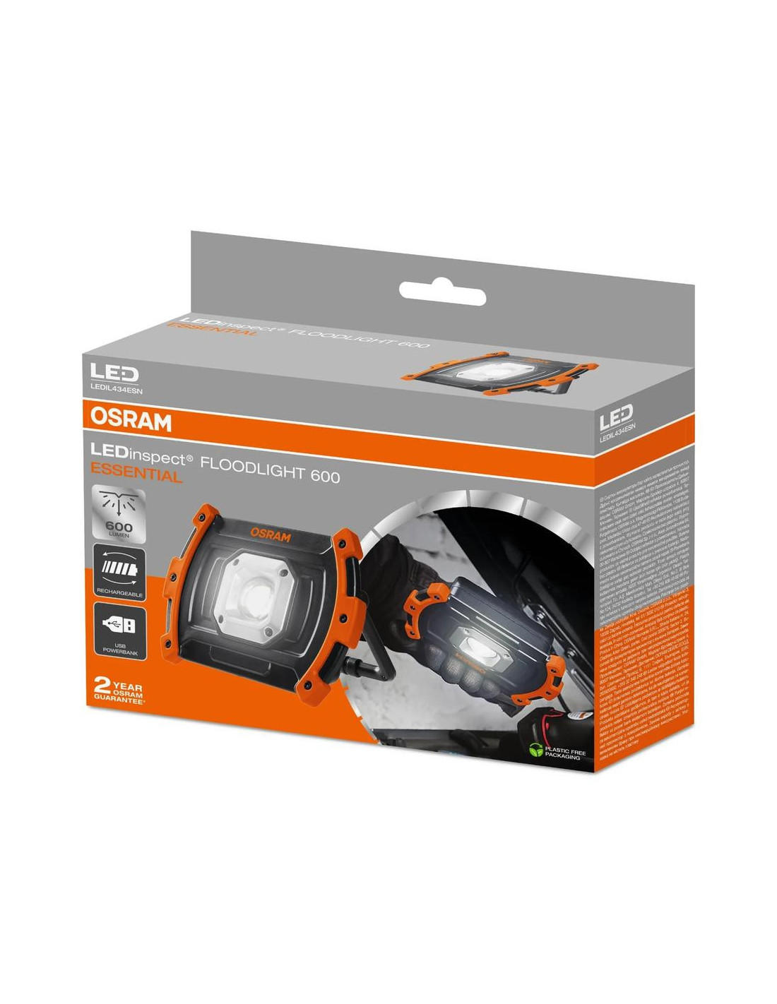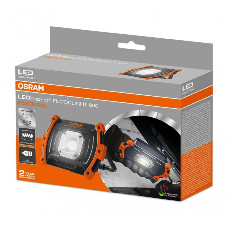 „OSRAM LEDinspect FLOODLIGHT 600 ESSENTIAL“ – tai kompaktiškas, įkraunamas darbo žibintas, sukurtas profesionalams. Suteikdamas iki 600 liumenų ryškaus ir tolygaus apšvietimo, jis suteikia vertingą papildomą apšvietimą dirbtuvėms, garažams ar atliekant užduotis objekte. Turint du apšvietimo nustatymus, žibintą galima reguliuoti pagal darbą: 600 liumenų maksimaliam ryškumui arba 300 liumenų baterijos veikimo laikui pailginti. Pasirinkus žemesnį nustatymą, „FLOODLIGHT 600 ESSENTIAL“ vienu įkrovimu veikia iki 6,5 valandos. Praktiškas ir nešiojamas, dėl lengvo dizaino jį lengva perkelti ten, kur reikia šviesos. O integruota išorinio akumuliatoriaus funkcija leidžia įkrauti mobiliuosius įrenginius naudojimo metu. Įkraunamas per USB-C ir turintis įkrovimo indikatorius, šis darbo žibintas suderina našumą, patogumą ir ilgaamžiškumą. Be to, jame yra integruotas išorinis akumuliatorius kitiems įrenginiams įkrauti.