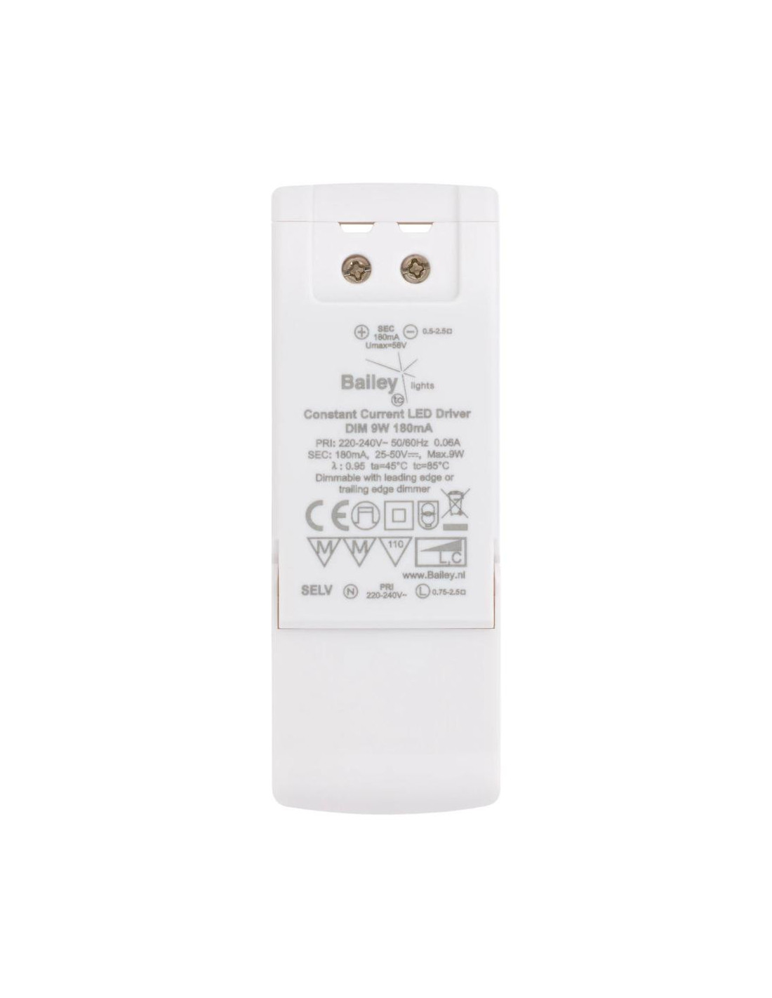 Pristatydama „Bailey Lights tOpO“ LED tvarkyklių seriją, „Bailey“ pristato daugybę LED tvarkyklių, kurios patenkina didelį šios srities rinkos poreikį. Įvestis 220–240 V, išvestis 18–35 V, 350 mA. Reguliuojamas pastovios srovės priekinis arba galinis kraštas. Užtikrina pastovią srovę (matuojamą amperais), nepriklausomai nuo apkrovos ar įtampos pokyčių. Naudojamas šviesos diodams ir grandinėms, kurioms tinkamam veikimui reikalinga fiksuota srovė ir išvengiama perkrovos. Apsaugo šviesos diodus nuo pažeidimų, užtikrindama, kad jie veiktų nurodytame srovės diapazone.