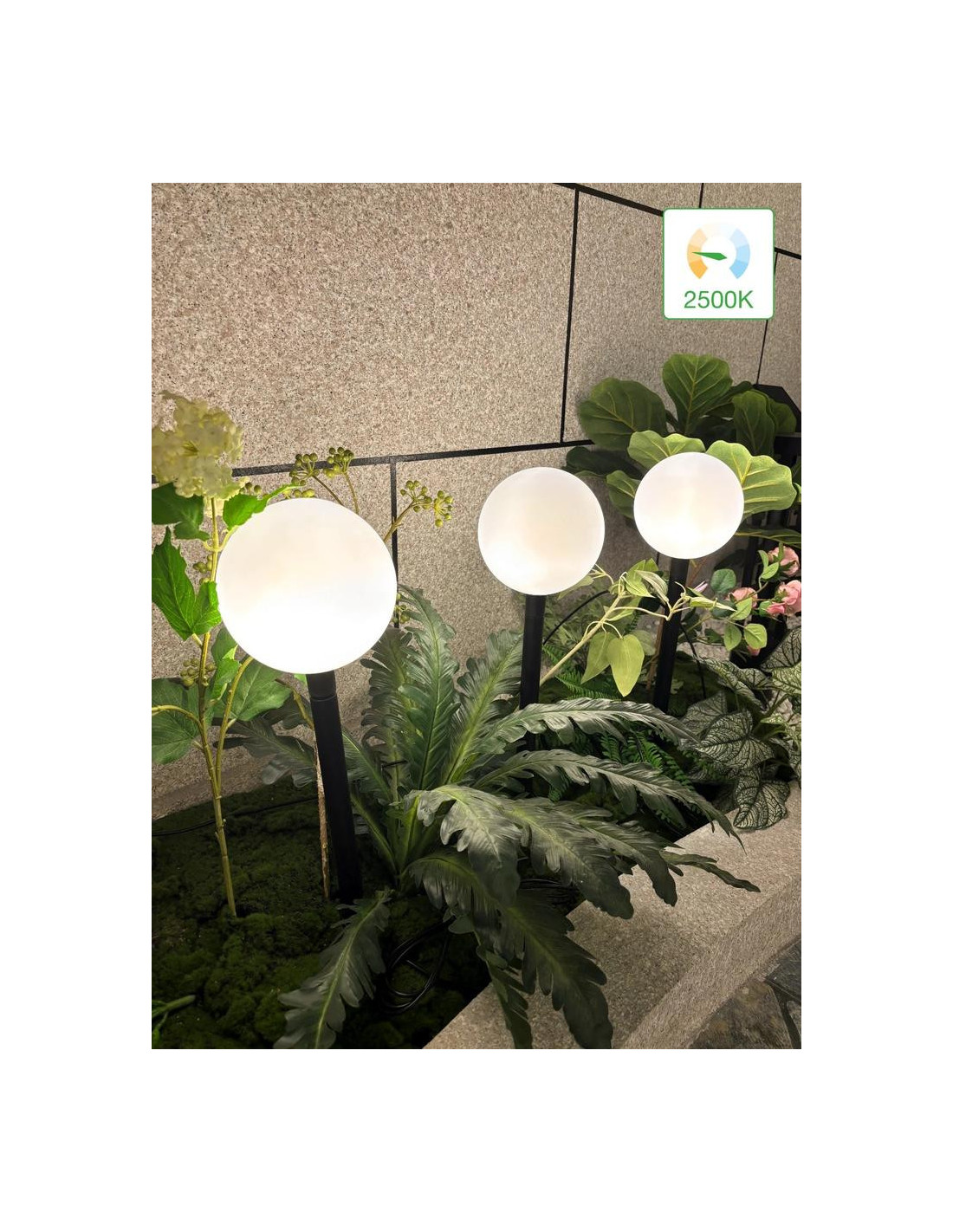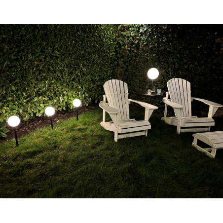 Su „Bailey Lights“ LED vakarėlių kamuoliukais atmosfera pakylėjama į kitą lygį. Saulės energija varomi sodo vakarėlių kamuoliukai sujungia elegantišką dizainą su išmaniu, tvariu funkcionalumu. Šis trijų lempų rinkinys veikia visiškai autonomiškai, naudodamas saulės energiją. Kiekvienas lempa turi specialų, keičiamą šviesos šaltinį, maitinamą galinga 3,7 V / 4 W baterija. Balti opaliniai pieniški rutuliai skleidžia šiltą, švelnią 2500 K šviesą, akimirksniu sukurdami jaukią atmosferą. 15 cm skersmens ir maždaug 60 cm bendro aukščio, įskaitant 20 cm žemės smeigtuką, jie stilingai atrodys bet kuriame sode ar lauke. Lempos sujungtos 100 cm laidu, o laido, jungiančio saulės bateriją, ilgis yra 200 cm, todėl galima lanksčiai montuoti. Pridedamą saulės bateriją galima montuoti trimis skirtingais būdais, įskaitant visus reikalingus priedus. Naudojant pridedamą nuotolinio valdymo pultą, šviesos intensyvumą galima lengvai reguliuoti. Po maždaug 8 valandų įkrovimo pilnoje saulės šviesoje lempos šviečia iki 8 valandų, priklausomai nuo pasirinkto režimo.