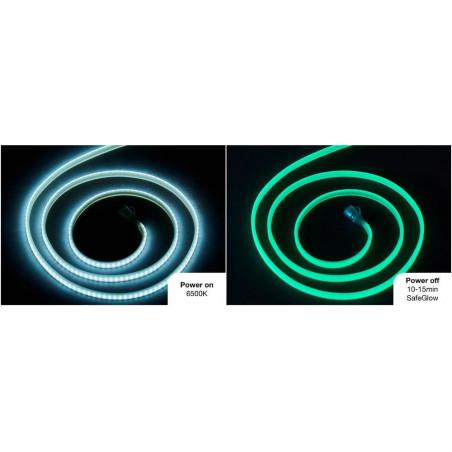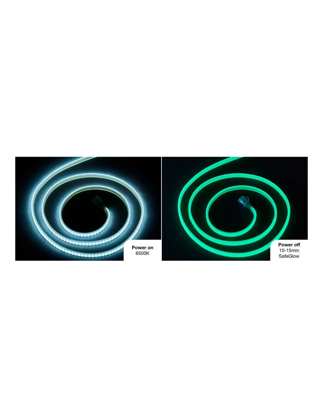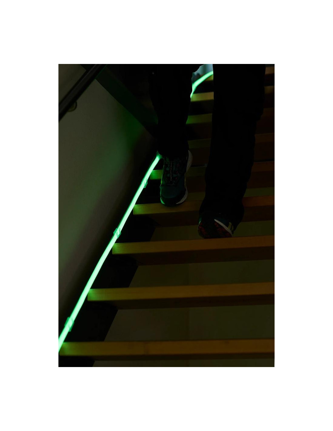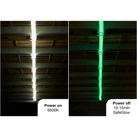 „Robust LED SafeGlow“ – tai sauga ir tvirtas apšvietimas. „Robust LED SafeGlow“ yra patikimos „Robust LED Rope Plus“ serijos dalis, o tai reiškia, kad visus suderinamus šios linijos priedus galima lengvai prijungti. Ji skleidžia stiprią 1000 lm/W šaltai baltą šviesą (6500 K), kaip ir standartinė „Robust LED Rope“, tačiau turi vieną svarbų privalumą: įmontuotą fosforo juostelę, kuri šviečia 10–15 minučių po elektros energijos tiekimo nutraukimo. Idealus avarinio apšvietimo sprendimas, padėsiantis saugiai išeiti dingus elektrai. 25 metrų ilgio šviesos virvė suvyniota ant patogios susukamos ritės, todėl ją lengva transportuoti tarp darbo vietų. Patikima. Patvari. Saugi.