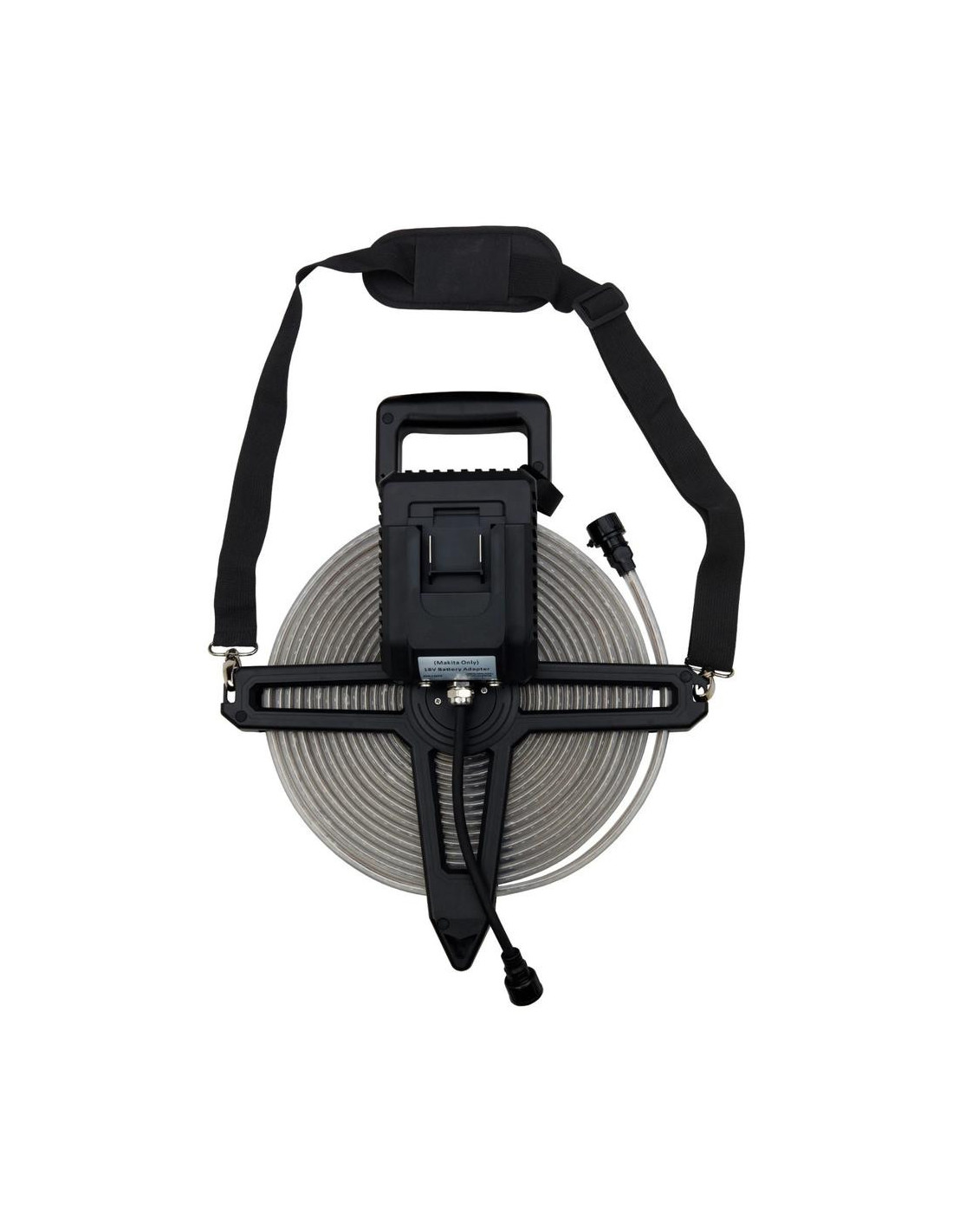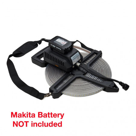 - Prieš naudodami perskaitykite instrukciją. Jungti tik pilnai išvyniojus ruloną. Galima maitinti iš Makita 18V akumuliatoriaus (akumuliatorius nepridėtas).