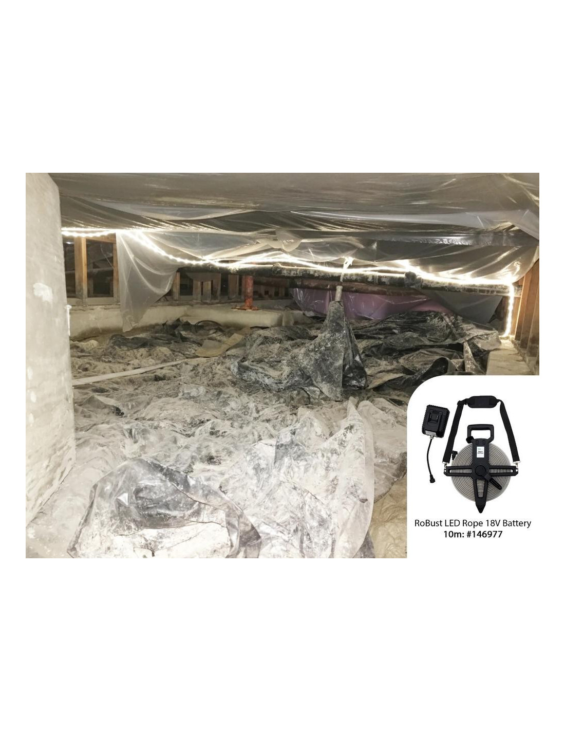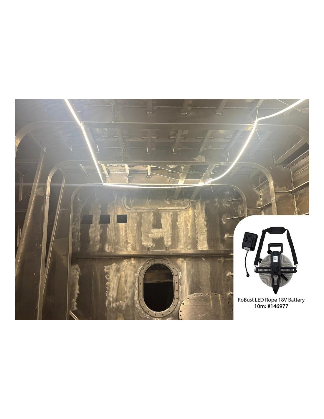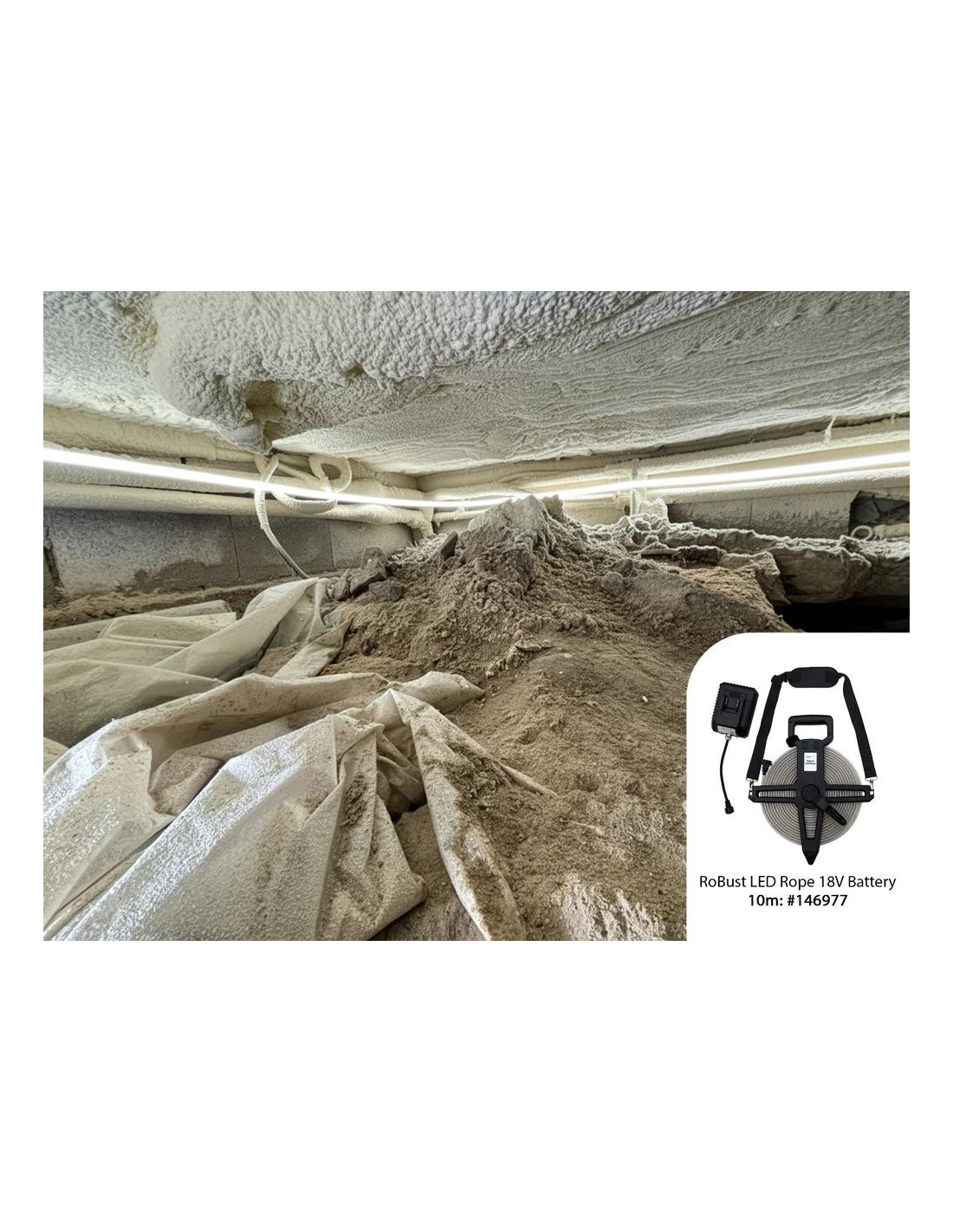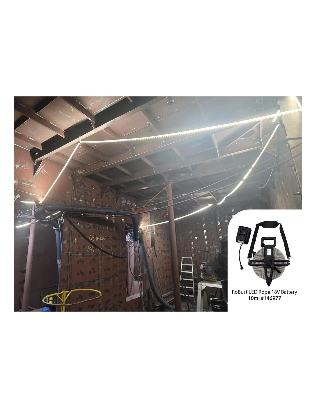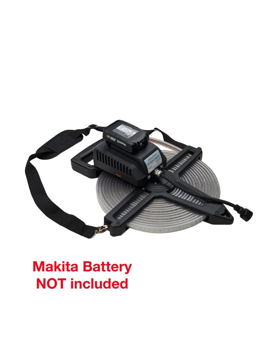 „RoBust“ LED virvė su 18 V baterija. Kompaktiška galia, visiškas lankstumas. „RoBust“ LED virvė su 18 V baterija – tai kompaktiška, žemos įtampos LED šviesos virvė, maitinama „Makita“ 18 V įkraunama baterija. Dirbkite visiškai lanksčiai, nereikalaujant maitinimo lizdo, puikiai tinka tose vietose, kur nėra elektros tinklo. Idealiai tinka trumpalaikiam darbui drėgnoje ar laidžioje aplinkoje, pavyzdžiui, pogrindinėse patalpose, kanalizacijoje, rūsiuose, plieniniuose laivuose, katiluose ir rezervuaruose. Tiekiama su „Makita“ adapteriu (akumuliatorius nepridedamas), turinčiu tris šviesos režimus: 100 % 800 lm/m, 50 % 400 lm/m, 25 % 200 lm/m. Skleidžia ryškią dienos šviesą (6500 K) su 120 laipsnių spindulio kampu. Virvė yra tvirta, atspari vandeniui (IP65), o smūgiams – IK10, dėka patvaraus PVC liejinio. Plokščia ritės konstrukcija leidžia ją lengvai suvynioti po naudojimo, o pečių dirželis leidžia patogiai pritvirtinti, pavyzdžiui, prie pastolių. Ištraukiama iki 20 metrų, o veikimo laikas priklauso nuo akumuliatoriaus talpos. Suderinamas tik su „Makita“ 18 V akumuliatoriais. Prieš įjungdami visada visiškai išvyniokite, kad neperkaistų. Tinka aplinkos temperatūrai nuo -20 °C iki +45 °C.