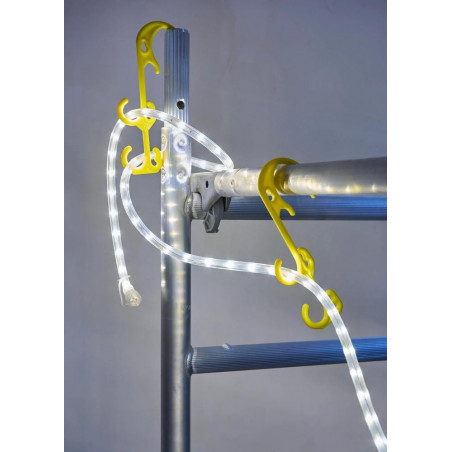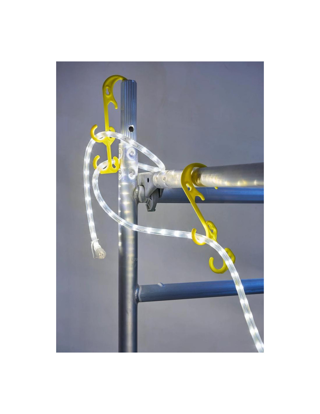 Šis daugiafunkcis tvirtinimo kabliukas gali būti naudojamas daugeliui pritaikymų. Yra tiek daug galimybių, kad kabliuką galima pritvirtinti prie sienos, tvoros, pastolių, grotelių, stovų ir kt. priekyje, šone ir gale. Tada vieną ar kelias tvirtas LED virves galima uždėti arba pritvirtinti prie kablio skirtingose pusėse.